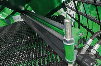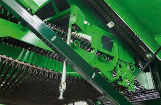 - Nagy kerekek, széles gumiabroncsok = nagy stabilitás, minimális talajnyomás = ideális betakarító gép nehéz talajviszonyok esetén is.