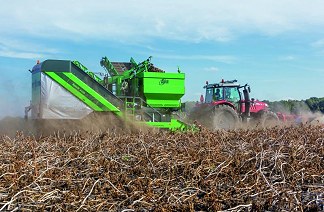 Az AVR Spirit 6200 2-soros, oldalvontatásos, tartályos burgonya betakarító gép, amely kevés energiát igényel, ezen túlmenően rendkívül burgonyabarát nagy betakarítási teljesítménnyel. A Spirit 6200 burgonya betakarító egyszerű kialakításával rendkívül megbízható és ugyanakkor látványos teljesítményt nyújt. A hatékony földelválasztás a termény felvétele után azonnal megkezdődik. A növényi rész leválasztó szalag hatékonyan elválasztja a szárakat a gumóktól. A hosszirányú gumiujjas tüskés szalag eltávolítja a laza talajt és a szármaradványokat a termékáramból.A 3 soros forgó gumiujjas leválasztó fésű eltávolítja a köveket és rögöket a terményáramból. A lapos kialakítású válogató szalag ergonómikus munkafelületet biztosít a végső vizuális ellenőrzéshez. Ezt követően a termény a nagyméretű bunkerbe kerül. Miután a bunker megtelt, az ürítés néhány perc alatt megtörténik.