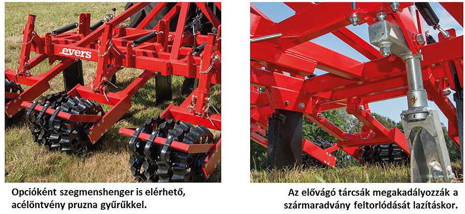 - A rugóterhelésű elővágó tárcsák a kések előtt a gyep roncsolása nélküli lazitást eredményeznek