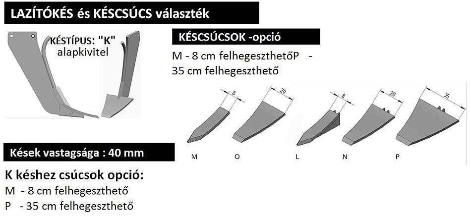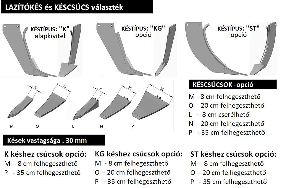 Lazítókése és késcsúcsok szélesválasztékkal- Minbden talajtípusra a megfelelő lazítókés változat.