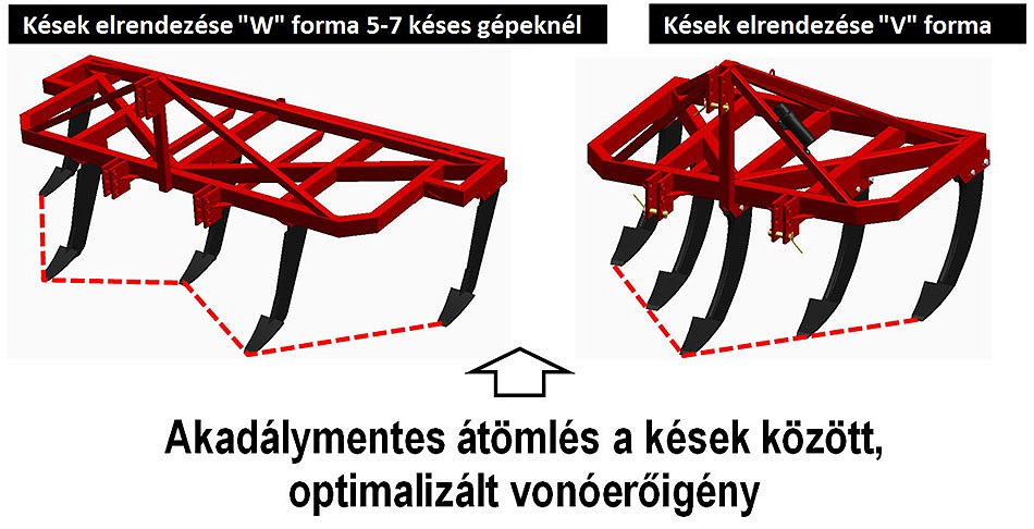 - Lazítókések V elrendezéssel, minmalizált vonóerőigény, és optimalizált egyenletes talajáramlás