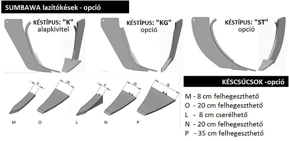 - Minden talajtípusra a megfelelő lazítókés változat.