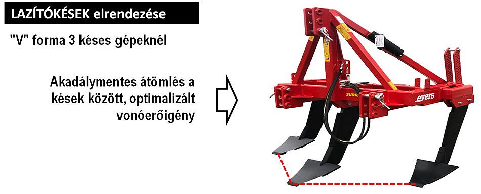 - Lazítókések V elrendezéssel, minmalizált vonóerőigény, és optimalizált egyenletes talajáramlás