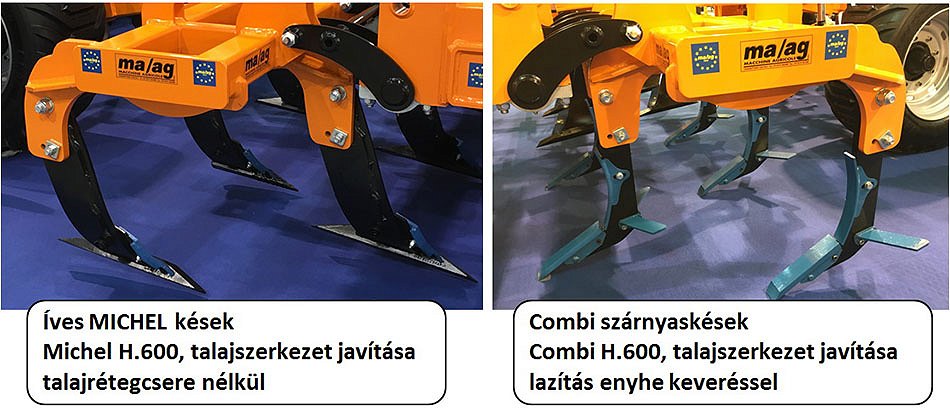 • Talajlazító modul, Michel H.600 típusú lazítókésekkel ellátott állítható és hidraulikusan felcsukható, kivéve 3 m-es