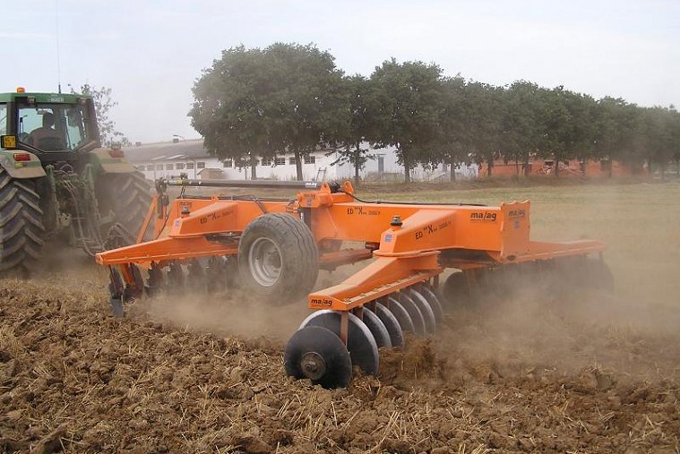 Az EDX2000M típusú nehéztárcsa, olyan gazdaságok számára készült, melyek magas hatásfokot szeretnének elérni nehéz megmunkálású, középkötött és kötött / nagy kiterjedésű területen. Az EDX2000M nehéztárcsa fő jellemzője az állítható elrendezésű, hosszanti irányban hidraulikusan csukható tárcsatagokkal rendelkező, mono fővázas szerkezet. A mono fővázas szerkezet kialakítását a számtalan kutatás és teszt eredményeként kifejlesztett, központi, rendkívüli szilárdságú és ugyanakkor rugalmas acél zártszelvény váz teszi lehetővé. Csapokon és csapágyakon keresztül ehhez kapcsolódik a négy darab tárcsatag. A tárcsatagok hidraulikus munkahengerekkel állíthatók, egyrészt a munkaszögük, másrészt a szállítási helyzetben történő váz alá történő behajtáshoz. A mezőgazdasági gépek piacán található többi munkagéphez képest ennek a tárcsának az a nagy előnye, hogy az első és a hátsó tárcsatagok egymástól függetlenül szabályozhatók. Ez pedig lehetővé teszi, hogy a traktor vezetője a lehető legoptimálisabban szabályozza a tárcsát a haladási sebességnek és a talaj minőségének megfelelően.