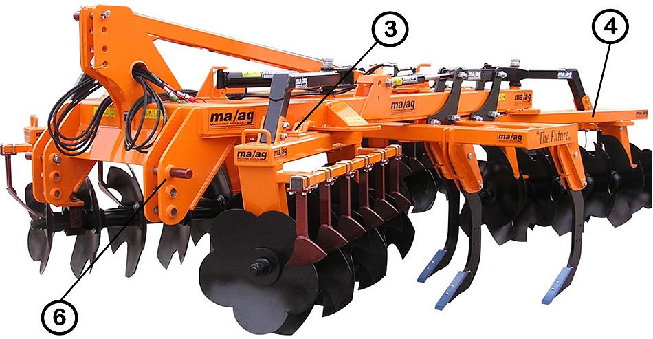 Kombinált gép a két rétegben történő talajműveléshez. Innovatív gép lehetővé teszi az eke valódi kiváltását, anélkül, hogy elveszítené sajátosságait (munkamélység és a növényi maradványok bekeverése), megőrizve agronómiáját és a költségek csökkentésének előnyeit A tárcsák munkamélysége: 20/30 cm, lazítókések munkamélysége 40/50 cm-ig