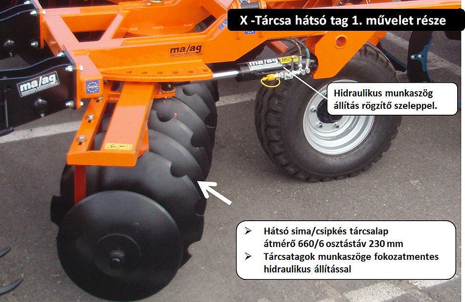 MA/AG rendszer. A tárcsatagok munkaszög szögállítása manuális.