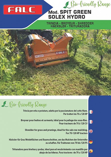 Prospektusok FALC SPIT GREEN SOLEX HYDRO kétoldalt soraljba rakó gyümölcsös, szőlő szártépő 1,5 / 1,8 m