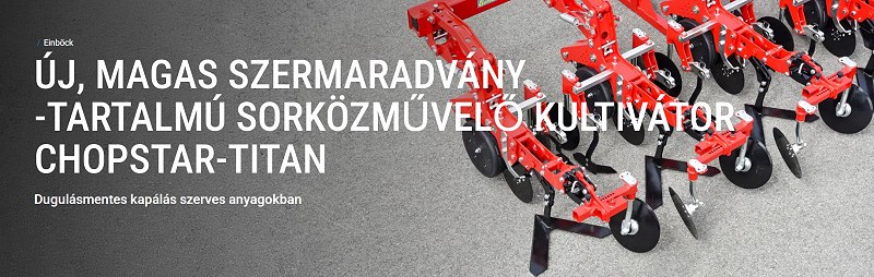 Bővítjük kapálási technológiai kínálatunkat az új CHOPSTAR-TITAN kultivátorral, amely magas szármaradvány-fedésű talajokhoz készült. Ezzel az új eszközzel innovatív megoldást kínálunk a magas szervesanyag-tartalmú mulcsozott területek és a sávos Strip Till talajművelés kapálására.