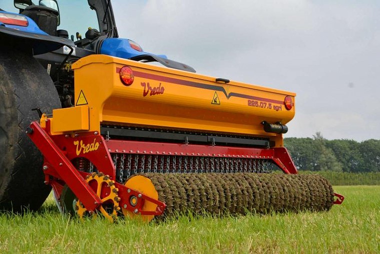 A Vredo Agri sorozat világszerte fogalom a mezőgazdaságban. Ezeknek a robosztus és pontos vetőgépek minden bérvállalkozónál ott lehetnének, hogy tavasszal az első kaszálás után, vagy ősszel a füves területeket felfrissítsék. Tar helyek, taposás és kocsi nyomok megszüntetése, az erózió megelőzése, vadkárok kijavítása, lóhere és lucerna vetése, ezek a Vredo direktvetőgép használatának okai. Az Agri sorozat 7,5 cm-es standard sortávolsággal rendelkezik. Ez tökéletes ahhoz, hogy a hiányos részen sűrű, zárt füvet hozzon létre és a gyom nyomását csökkentsek. A fűmag vetése tökéletes az optimális csírázáshoz, bekerül a talajba védve a madarak étvágyától és a szárazságtól. A Vredo direktvetőgéppel végzett vetés akár 80 % időt és üzemanyagot takarít meg a hagyományos, újravetéssel, szántás, magágyelőkészítéssel, vetéssel és hengerléssel összehasonlítva.